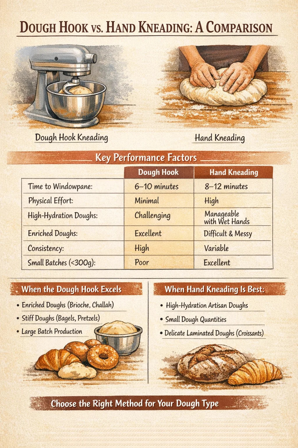 Begge metodene kan produsere utmerket brød. Forskjellene kommer ned til kontroll, tid, innsats og de spesifikke kravene til deigen du jobber med.